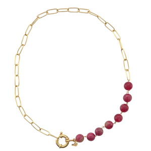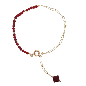 SN431 18K Gold Plated "paper clip" chain with Carnelian Stones