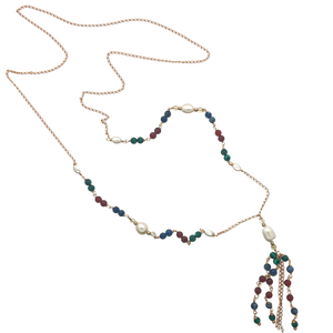 SN432A Assorted Semi Precious Stones Necklace with Fresh Water Pearls